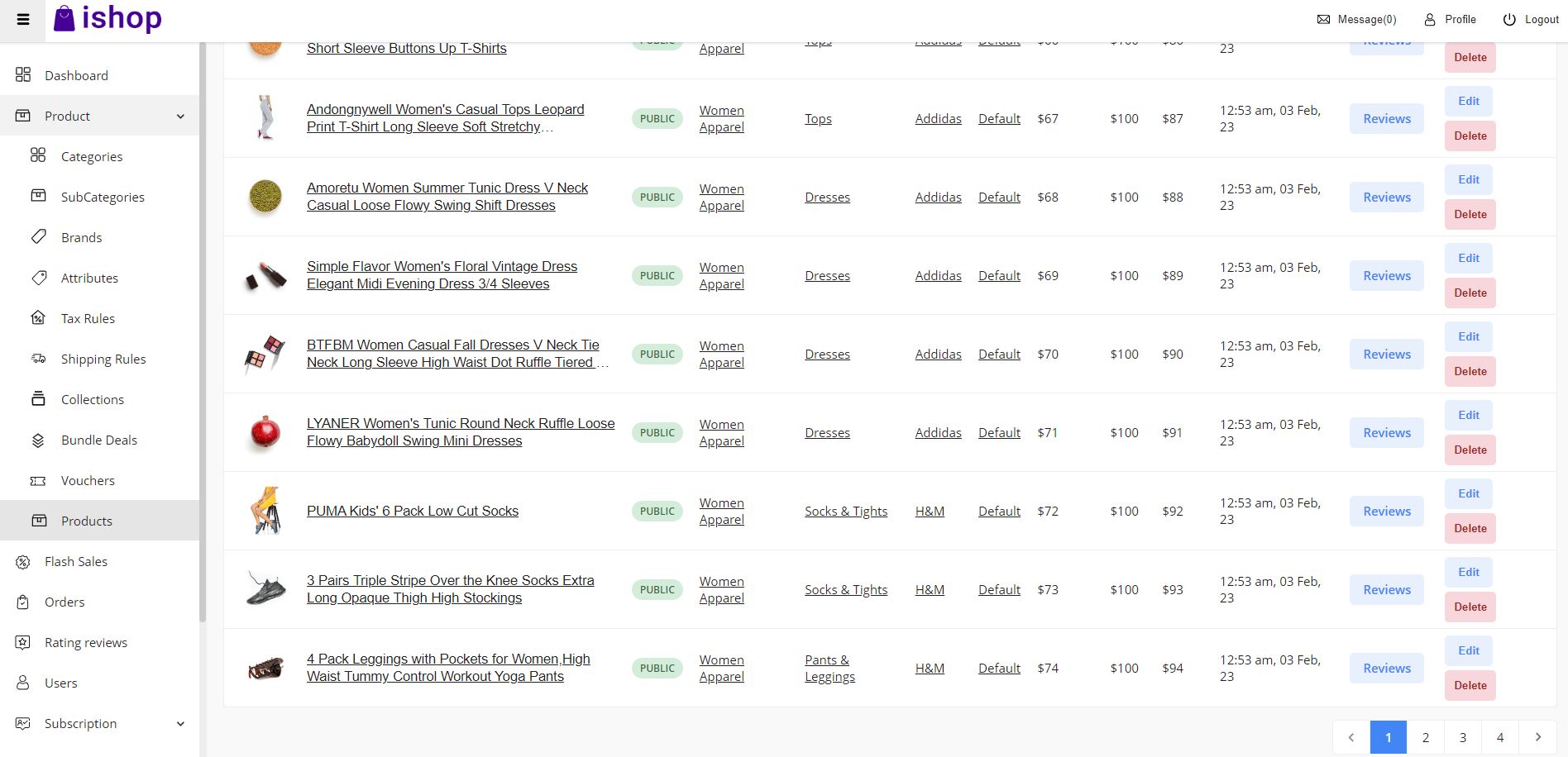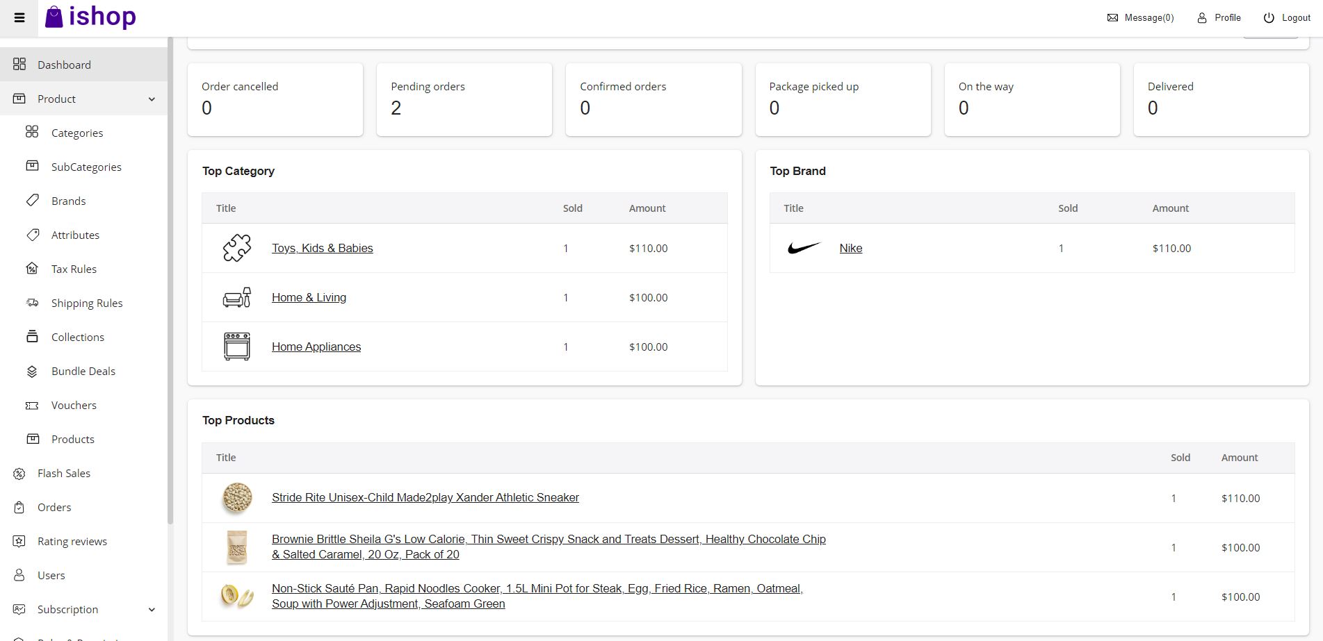- Admin panel dashboard pagination: There is an option of showing the top category, top brands and top products in the dashboard page, that is being set from the pagination > DASHBOARD
