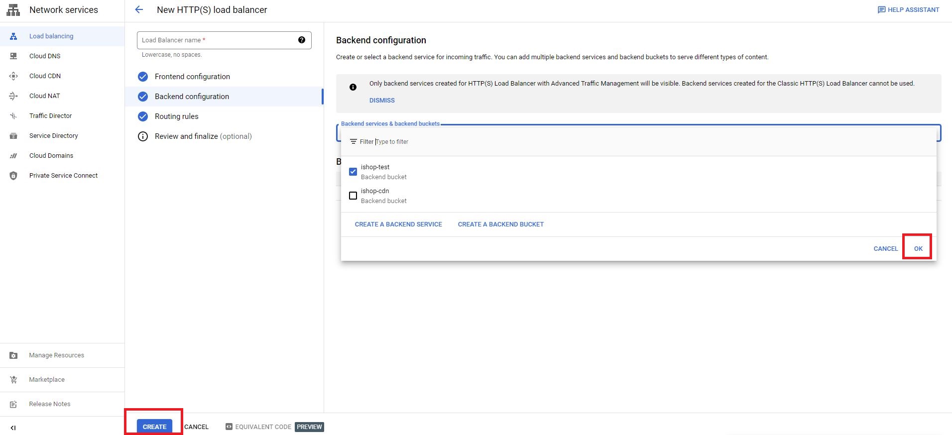 - Click on CREATE LOAD BALANCER on the header.