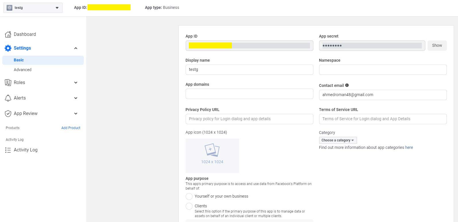 - Now click Setting > Basic and set the App domains.