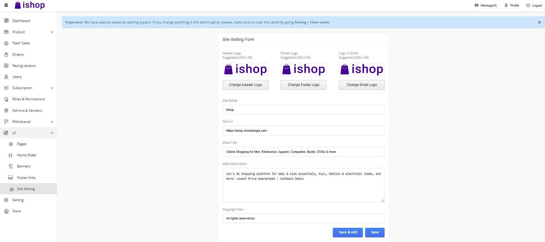 Go to UI > Site setting