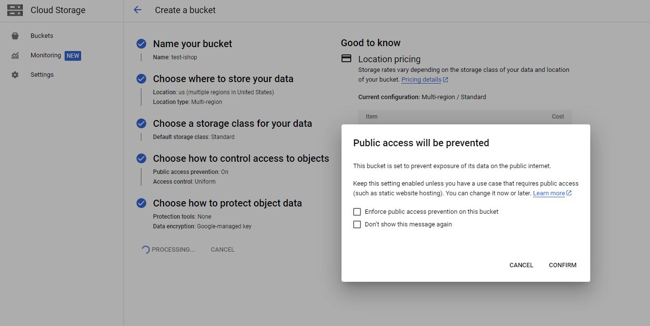 - Uncheck Enforce public access prevention on this bucket.