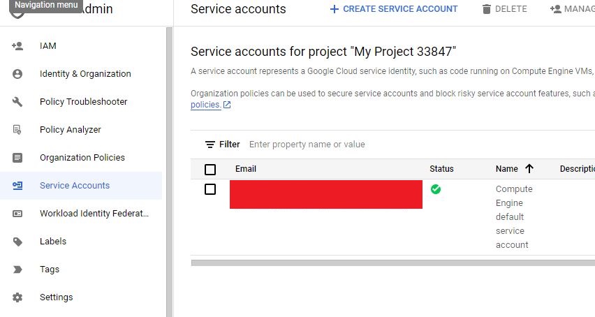 - If there is no service account here, Click on the "Create service account" button at the top of the page. Enter a name for your service account and optionally provide a description. Choose a role for your service account. For Google Cloud Storage, you can choose the "Storage Object Creator" or "Storage Object Admin" role depending on the level of access you want to grant to the service account.