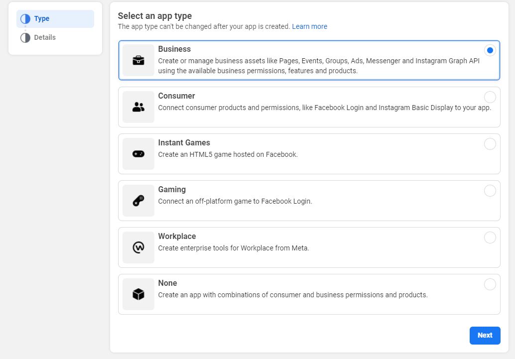 - Choose a type of the app.